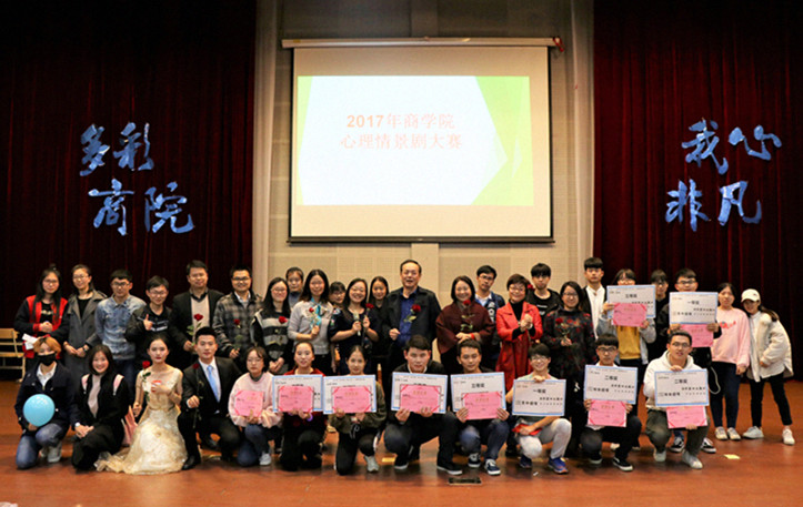 在第二报告厅举办了第六届“多彩商院,我心非凡”心理情景剧大赛。院长潘煜双、副院长顾骅珊、党委副书记陈云飞以及全体学工办辅导员观看了本次比赛。