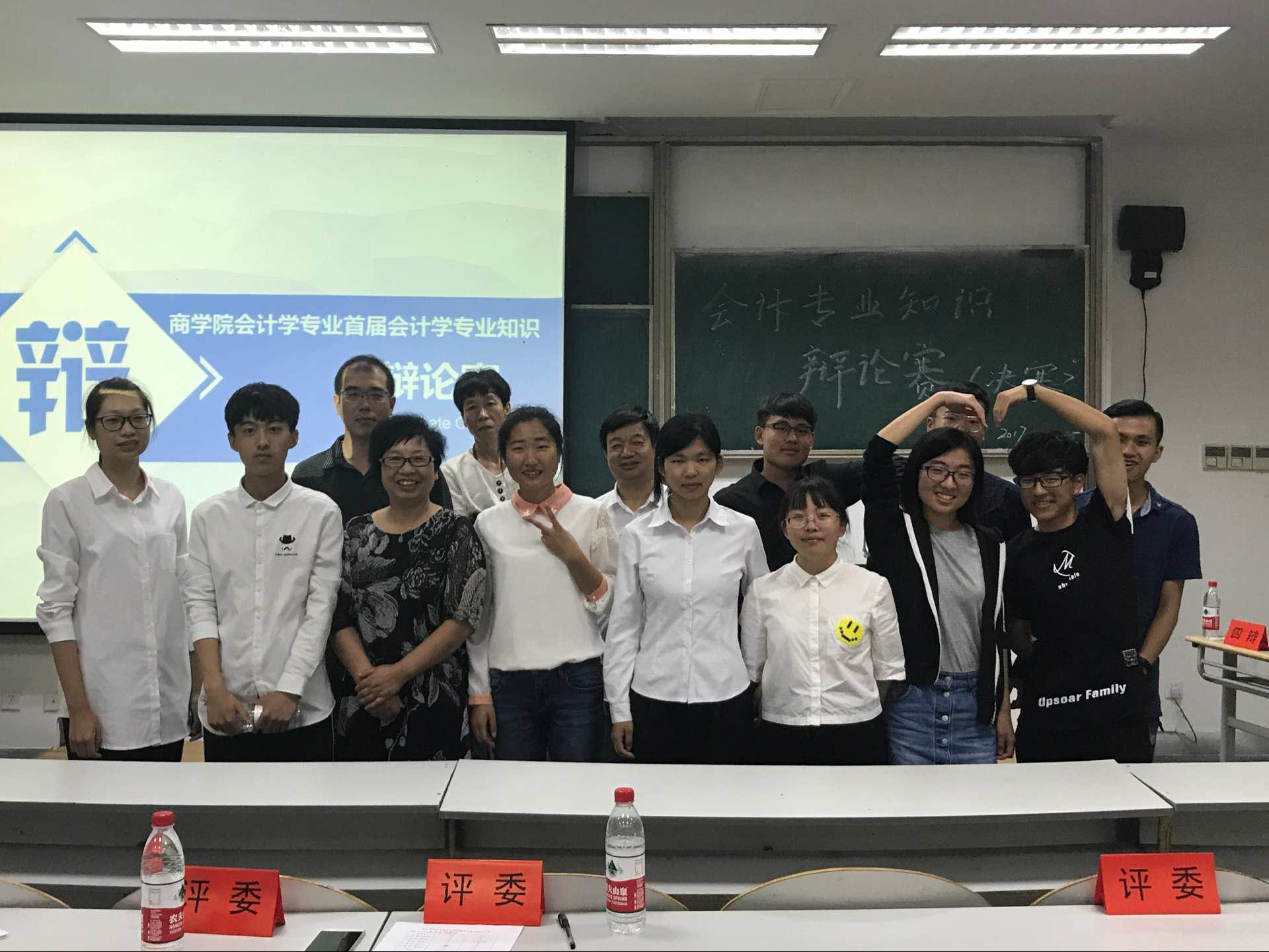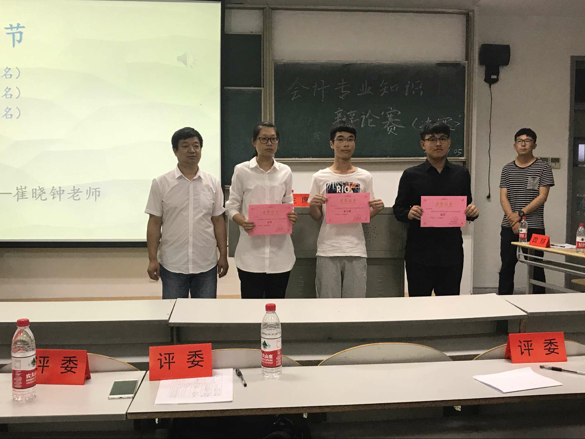 首届“会计专业知识辩论赛”决赛在教一159举行。会计学专业崔晓钟、胡桂兰、马晨明、张敏彦4位老师应邀担任大赛评委,学院院长潘煜双出席观摩了此次大赛。