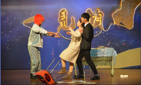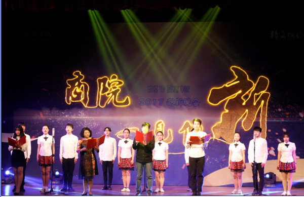 党委书记施敏颖老师在晚会上致辞,辞旧迎新之际回顾了过去的一年,并对学院提出了新的期望。随后,商院团学人带来的活泼可爱的玩偶舞《Joker》迅速点燃了现场。金融163的心理情景剧《幸福一直在》催人泪下,话剧社的小品《我家孩子叛逆期》令人捧腹不已。悠扬动听的歌曲、婀娜多姿的民舞、出神入化的魔术、时尚个性的走秀,让人叹为观止。商院的老师们也毫不逊色,舞蹈《塞西莉亚》,尽显青春活力。最后,一首由王焕祥老师创作,潘煜双老师、王焕祥老师、吴恺中和奚旖旎两位同学领诵的《商院颂》道出了每位商院师生的心声与向往,将晚会推向高潮。“学院沧海何时发,愿为你早生华发。早生华发又何妨,愿得一路撒书香,书香里阅尽来日辉煌……”