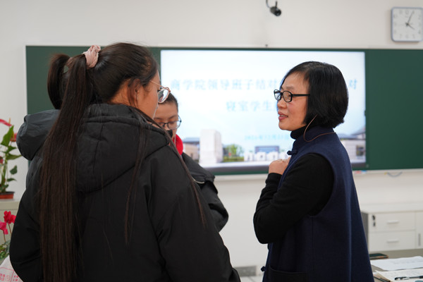 会上,学院院长潘煜双、党委书记邵燕等与同学们亲切交谈,详细了解同学们进入大学一学期以来的学习生活情况,关切询问了藏族同学和维族同学对当地的气候、环境、饮食以及大学学习等各方面的适应情况,并就同学们遇到的一些问题和困难给予耐心的解答和指导。潘煜双鼓励同学们要树立正确的人生目标和大学四年的学业目标,牢牢把握“学习”核心主题,不断提升自己的综合素质和核心竞争力,以奋发昂扬的精神面貌投入到学习生活中、投入到期末复习考试中。同时也要求同学们以更高的站位,严格遵守校纪校规,严格遵守疫情防控规定,对标标杆寝室,发挥寝室优势,积极创建民族融合、共同进步的特色寝室;对标优秀学长学姐,努力成长为商院学子的优秀代表。