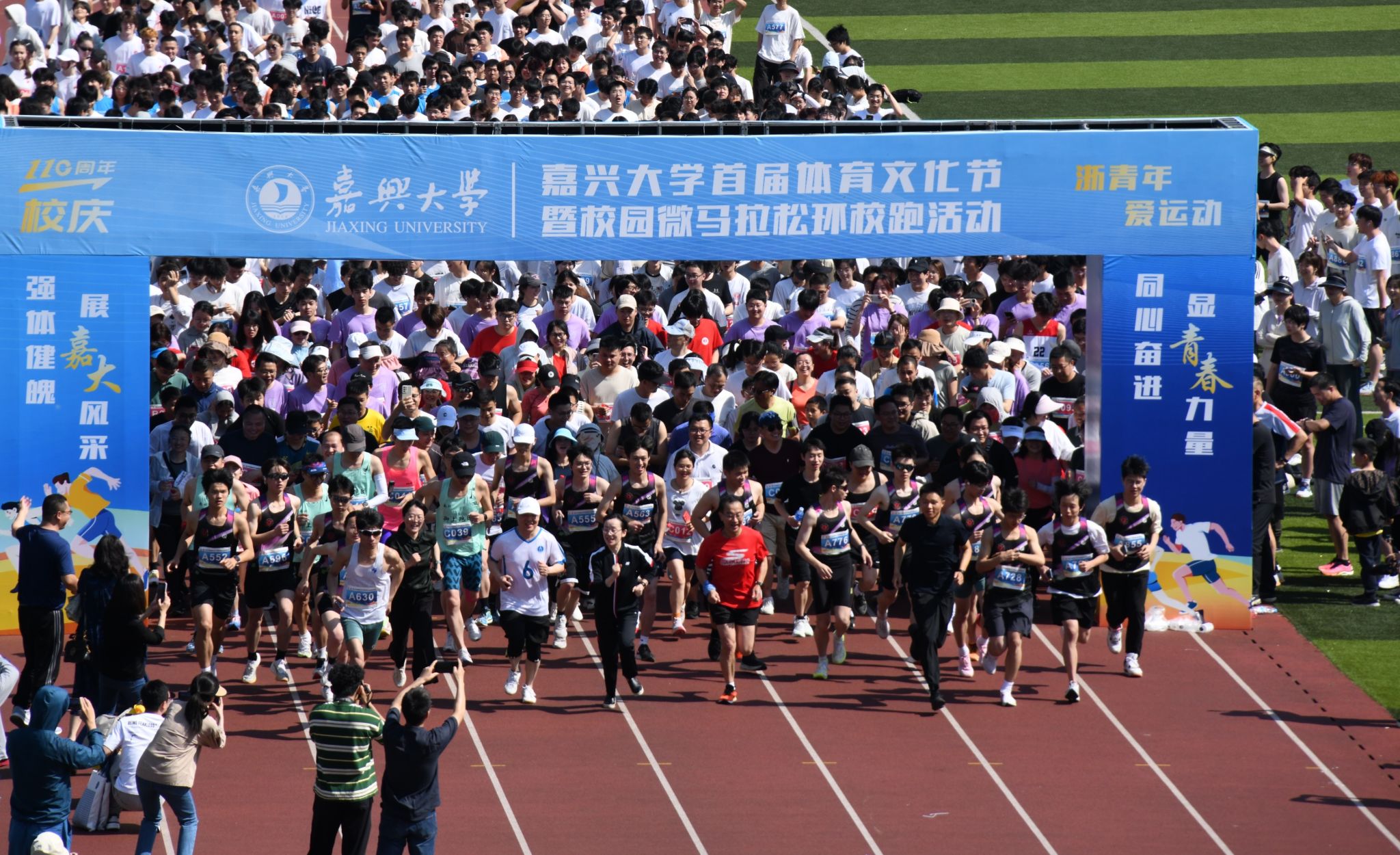 首届体育文化节启动仪式暨校园微马拉松环校跑在梁林校区西田径场举办,来自袋鼠影视