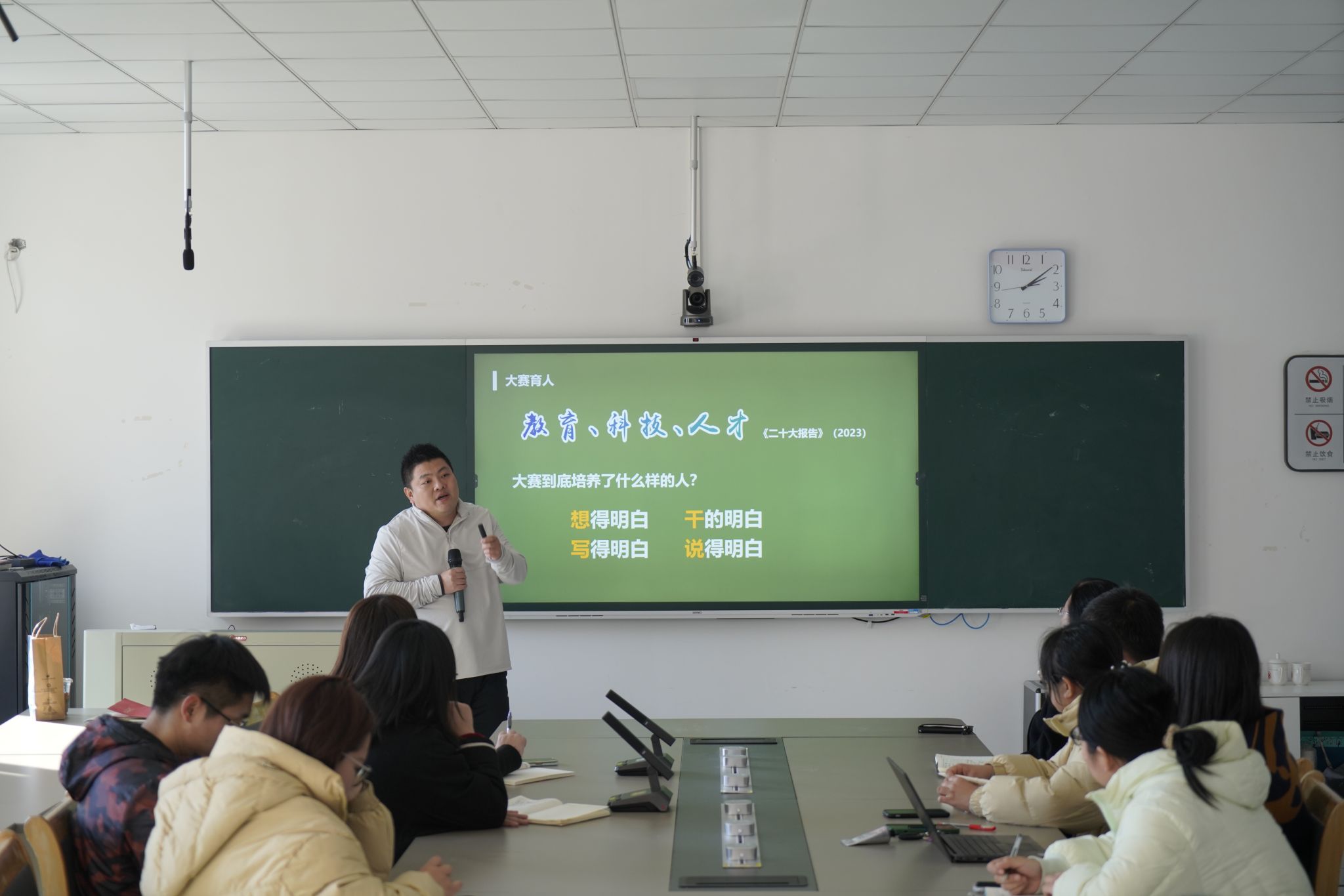党委副书记潘欣主持会议,她对教师们的积极参与表示感谢。她强调,创新大赛不仅是学生展示自我的平台,也是教师提升自身能力的契机。希望大家精心组织,总结经验,优化策略,攻坚克难,积极备战2025年中国国际大学生创新大赛。