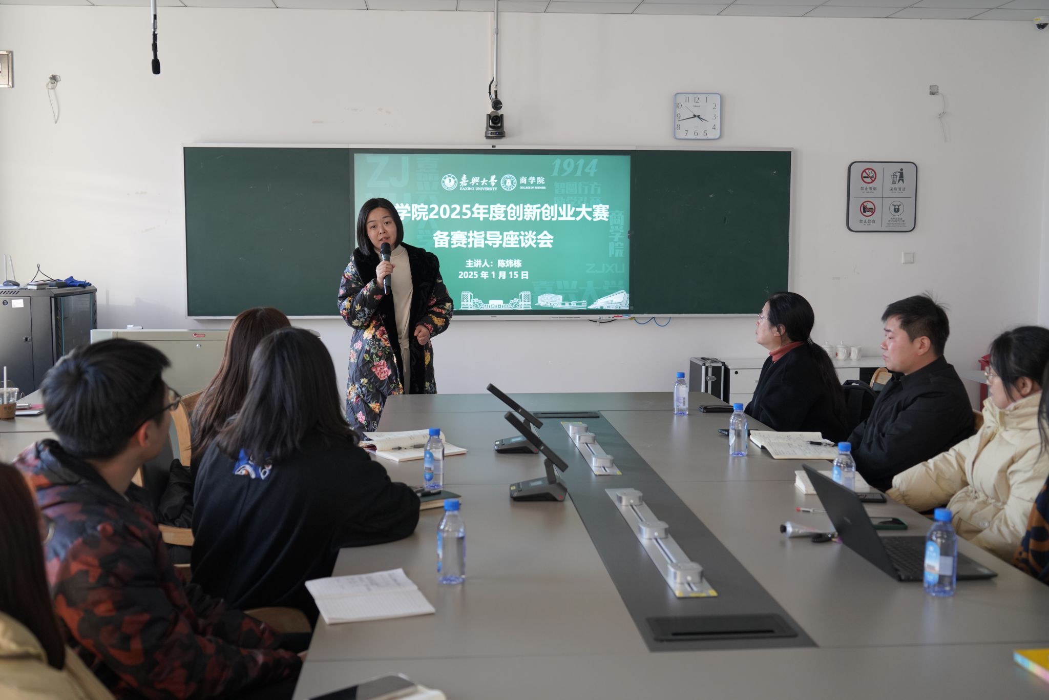 在尚德楼311举行2025年度创新创业大赛备赛指导座谈会,学院领导、各系教师、专业辅导员出席会议。