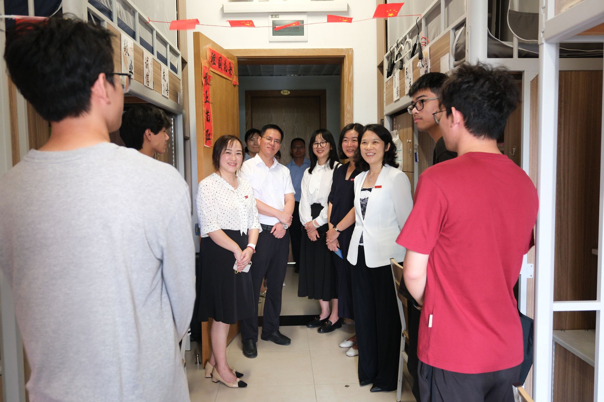 党政班子陪同走访,实地了解学生生活与学习情况,传递学校关怀。