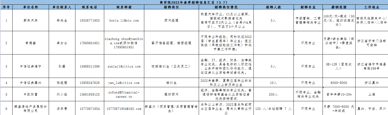 袋鼠影视 2022年春季校园招聘已启动,为帮助同学们便捷高效了解相关信息,汇总一批企业信息,涵盖蔚来汽车、肯德基等六家企业,招聘岗位明细见附件。