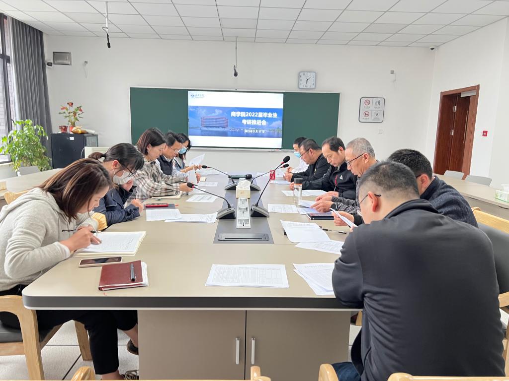 在尚德楼311召开2022届毕业生考研推进会,学院党委副书记潘欣、各专业考研指导教师、全体辅导员参加会议,会议由张啸峰主持。