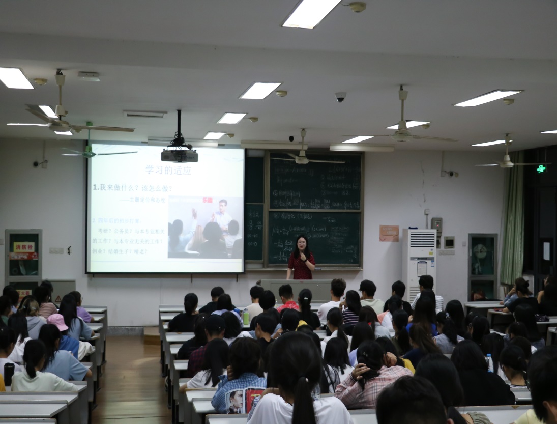 讲座从点滴入手,比如食堂的饭菜、陌生的宿舍环境等一系列贴近日常生活的小事与同学们进行了一次深刻的交流。同时老师们也指出同学们在将来的生活中可能会遇到人际交往、学习、恋爱等方面的困惑。针对这些困惑,老师们还通过引用一些具体案例,告知同学们在遇到类似情况时如何进行自我调试,如何寻求帮助。