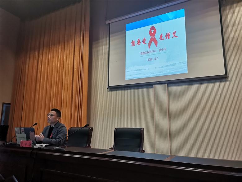 讲座上,夏中华以“知艾防艾,共享健康”为主题,从艾滋病疫情概况、艾滋病基本知识、艾滋病预防等方面,用详实的数据讲解了预防艾滋病依然面临的严峻挑战,从艾滋病病毒特点、感染分期、传播途径等深刻剖析了艾滋病预防基本知识,并结合当前青年学生群体现状和真实个案,提醒同学们务必切实增强艾滋病预防意识、清晰预防措施、了解咨询检测渠道,也希望同学们能够正确看待艾滋病、不歧视艾滋病患者,能够真正做到“携手防疫抗艾、共担健康责任”。