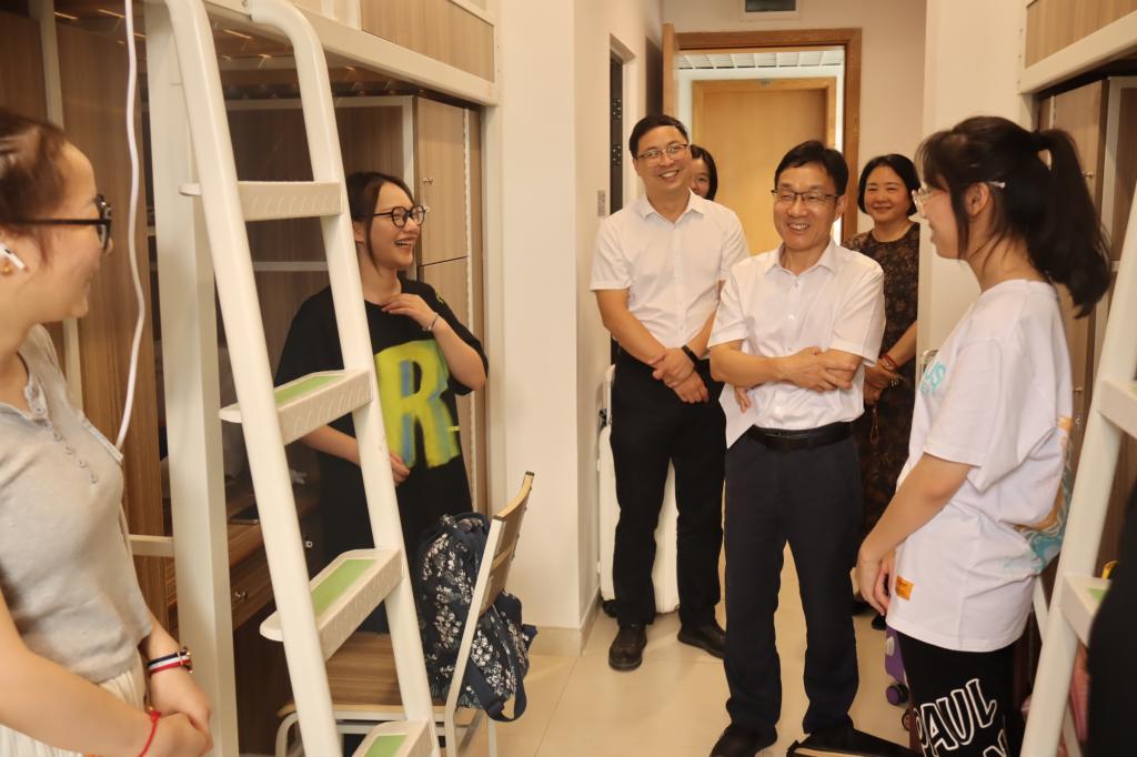 走访过程中,卢新波与2022级新生进行亲切交谈,关切询问了新生们的入校感受、家乡籍贯、新学期的安排等,并耐心解答了同学们的疑惑与问题,鼓励他们尽快融入班级、融入学院学校大家庭。他指出,大学是人生的新阶段,一定要将学业放在第一位,在保证学业的基础上,要注重体育锻炼,全方位拓展和提升综合素质。他指出,奋斗是青春最亮丽的底色,行动是青年最有效的磨砺,希望同学们能不忘初心,志存高远,脚踏实地,刻苦学习,做新时代奋力奔跑的闪光青年。同学们也表示在今后的学习生活中,必将以积极向上的精神面貌开启新征程、迎接新挑战、创造新成绩。
