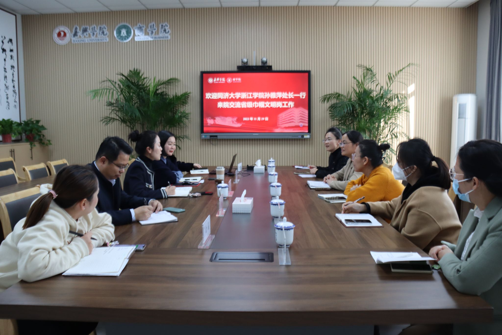 11月29日下午,同济大学浙江学院孙雅萍处长一行来袋鼠影视 交流巾帼文明岗工作。校妇联执委、副主席徐蓉、学院党委副书记、妇委会主任兼创岗岗长潘欣及岗员代表参加了会议。