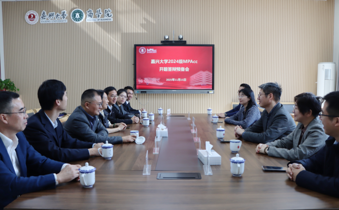 担任各小组答辩主席,还邀请了嘉兴南湖实验室科技控股有限公司财务总监王利民、浙江嘉兴国有资本投资运营有限公司副总经理朱鸿涛、嘉兴浙诚税务师事务所所长江一帆、浙江卫星控股股份有限公司财务中心副总监李森柏、浙江中晶科技股份有限公司财务负责人黄朝财、浙江保镖电子有限公司财务总监潘磊等6位行业导师参与开题答辩,充分体现了中心对理论与实践相结合的培养理念。2024级会计硕士研究生全员参加开题答辩,部分2025级会计硕士研究生到现场观摩学习。