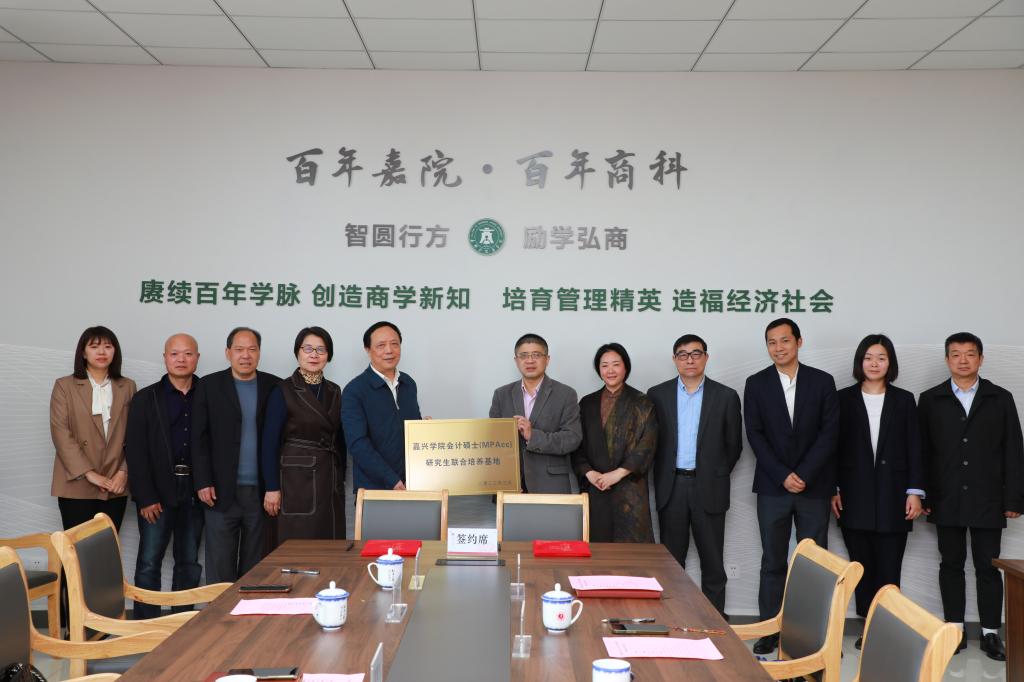 周楚兴、陈荣达共同为嘉兴学院会计硕士(MPAcc)研究生联合培养基地授牌。潘煜双与章世英签署了嘉兴学院会计硕士(MPAcc)研究生联合培养基地合作协议书。双方还就人才培养、人才招聘、项目合作等工作展开深入交流。