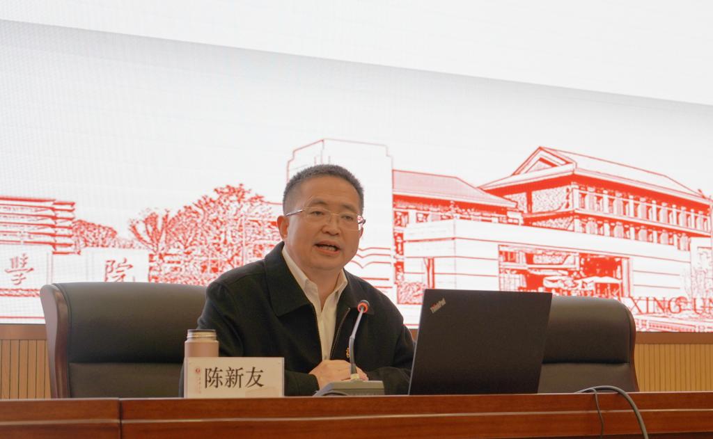 陈新友紧扣党的二十大主题和报告原文,围绕深刻认识学习宣传贯彻党的二十大精神的重大意义、全面准确把握党的二十大精神和以党的二十大精神为引领推进学校各项工作等三个方面展开宣讲。他指出,认真学习宣传贯彻党的二十大精神,事关党和国家事业继往开来,事关中国特色社会主义前途命运,事关中华民族伟大复兴,广大教职工要以强烈的政治责任感和使命感认真学习党的二十大报告和党章,认真领悟党的二十大提出的新思想新论断、作出的新部署新要求。陈新友强调,要把学习宣传贯彻党的二十大精神与深入贯彻落实习近平总书记重要指示批示精神结合起来,把学习宣传贯彻党的二十大精神转化为办好人民满意教育的强大动力,转化为推进实施人才核心战略的强大动力,转化为推进实施人才核心战略的强大动力,转化为引领地方高质量发展的强大动力,转化为加强党组织和党员干部自身建设的强大动力,以时不我待、只争朝夕的精神,增强历史主动,勇担时代使命,全面贯彻落实党的二十大精神,大力实施“1358”发展战略,全力推进一流应用型综合性大学建设,在奋力推进“两个先行”服务“两个率先”新征程上踔厉奋发、砥砺前行,为全面建设社会主义现代化国家、全面推进中华民族伟大复兴贡献嘉院力量。