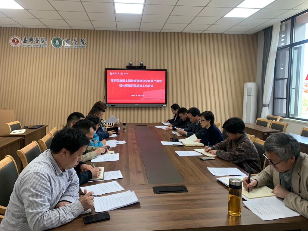 4月27日下午,学院在尚德楼345会议室召开推进主题教育暨深化全面从严治党强化师德师风建设工作会议,院党委书记邵燕主持会议,副院长李郁明,全体系(部)主任、教工党支部书记参会。