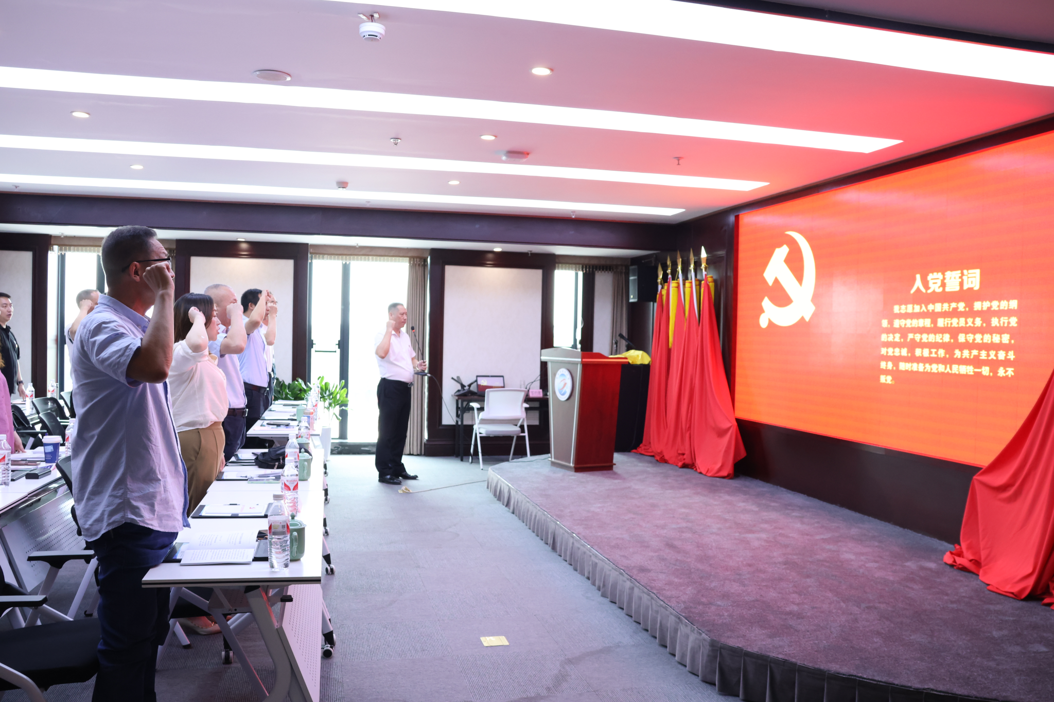 为进一步增强基层党组织战斗堡垒作用、提升党建引领服务发展能力,7月6日下午,袋鼠影视 党委与嘉兴市温州商会党委联合开展“强党性 践初心 推进新时代‘两个健康’”为主题的“七一”主题党日活动,在相互交流中推动党建共建、增进友谊联谊。学院院长、党委副书记李勇,党委书记、副院长虞岚,党委委员、副院长翁胜斌及教师党员代表出席活动。
