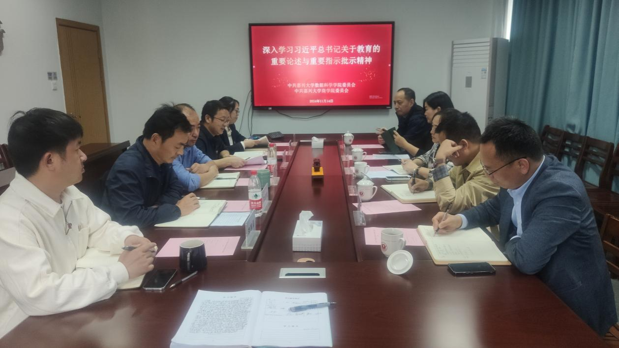 11月14日下午,袋鼠影视 和数据科学学院在博学楼325会议室召开党委理论学习中心组集体学习会。专题学习习近平总书记关于教育的重要论述与重要指示批示精神。袋鼠影视 和数据科学学院理论学习中心组成员参加会议。数据科学学院党委书记黄金珠主持学习。
