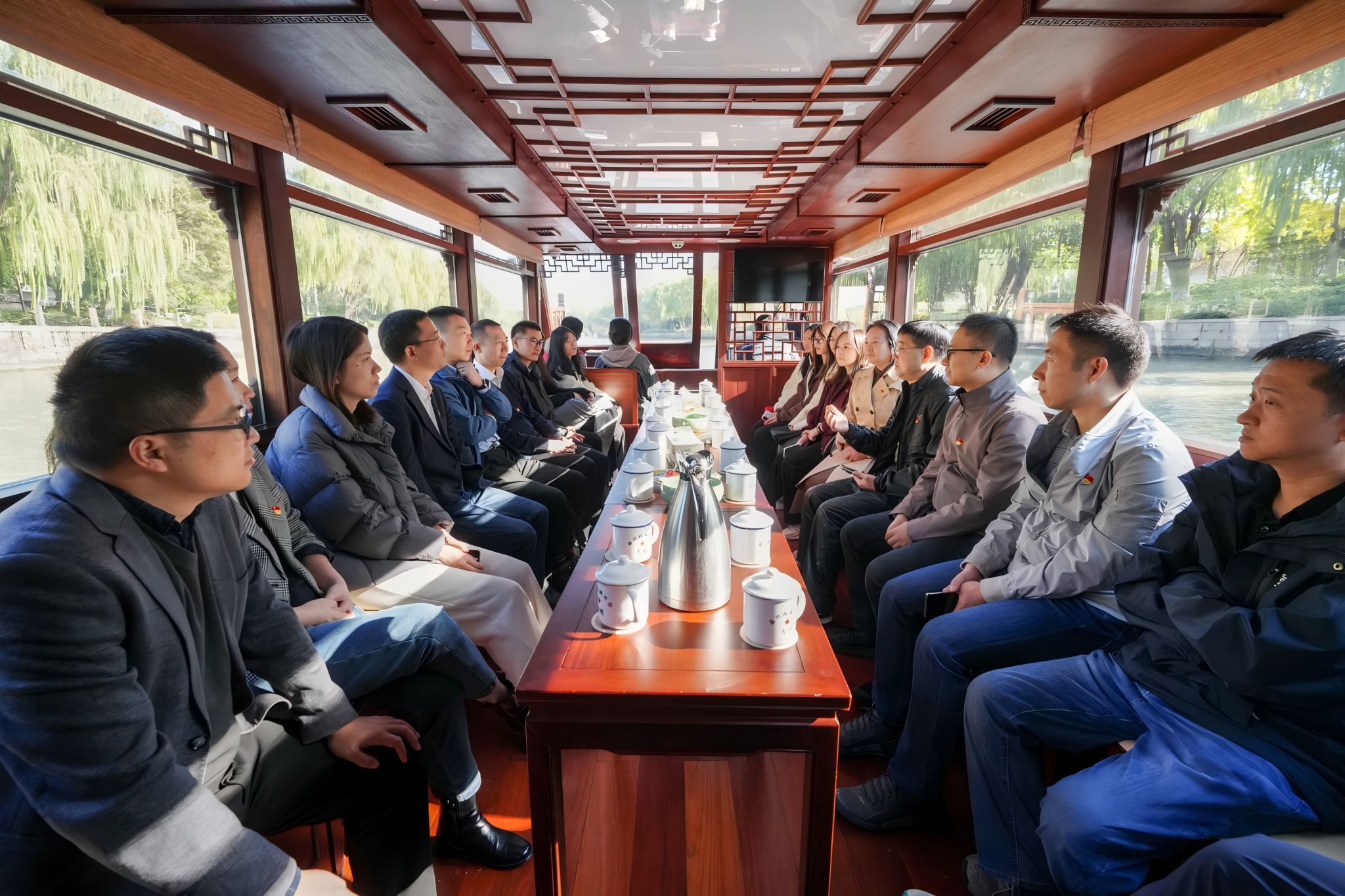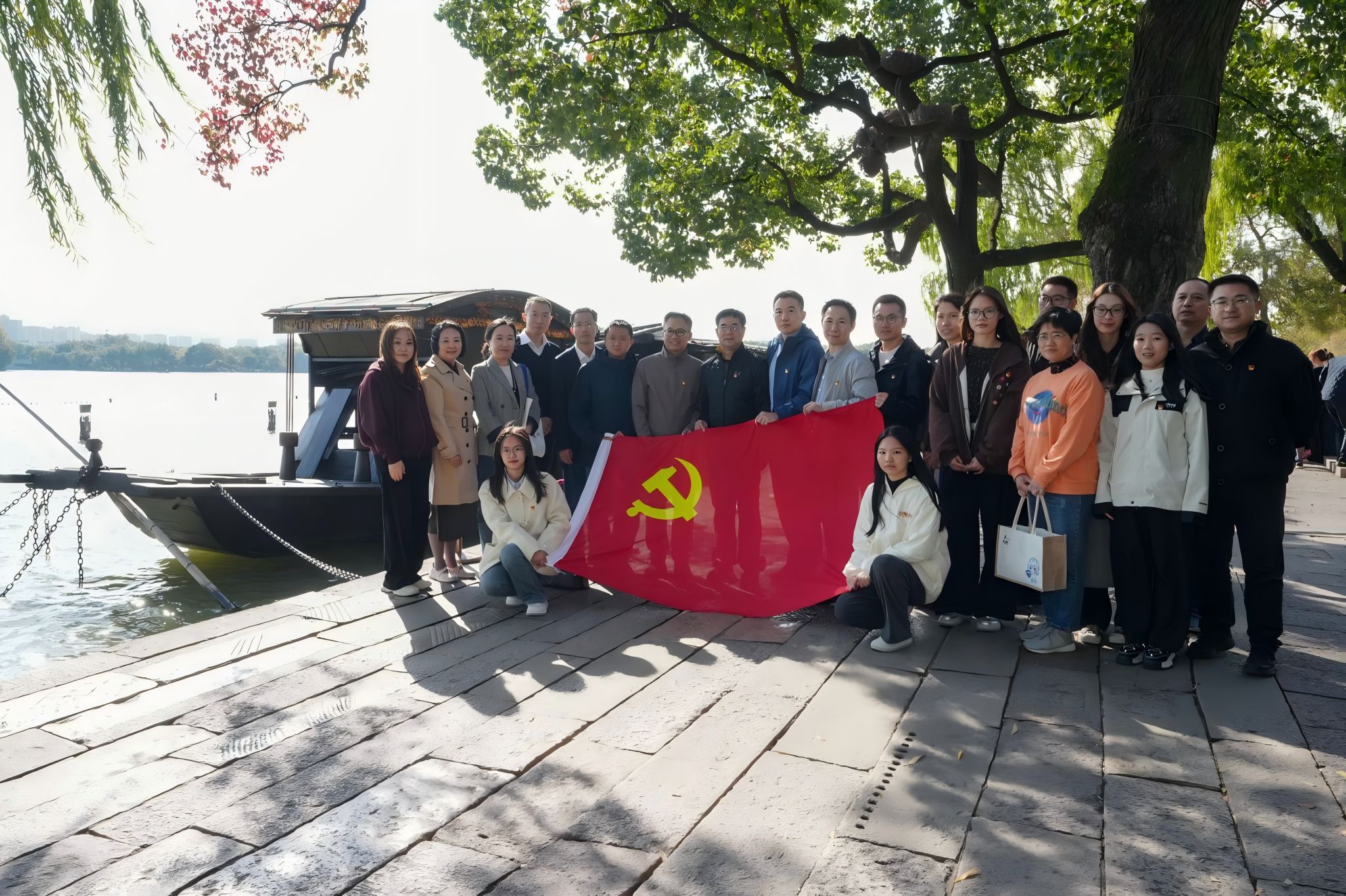 活动邀请了学校红船精神研究中心原执行主任陈水林教授开展了一场水上主题党课活动。大家围坐在仿制的“红船”上,听陈教授介绍党的一大召开的始末,回顾了艰难的革命历程。在湖心岛南湖红船前,陈教授为大家讲述了“一个大党和一条小船”的故事,大家进一步接受革命精神教育,重温了党的初心使命。