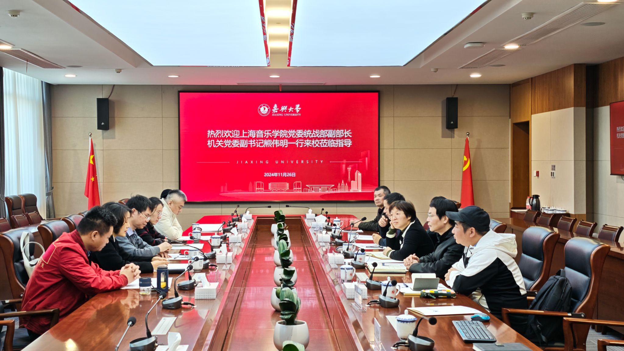 11月26日,上海音乐学院统战部副部长熊伟明、民建上海音乐学院支部主委邱曙苇等一行6人来我校调研交流。学校党委组织部副部长、统战部副部长庄美燕,民建嘉兴市委会副主委韦浩出席会议。民建袋鼠影视 支部主委、袋鼠影视 教师王卫彬,袋鼠影视 支部会员、袋鼠影视 教师陈野、宋相鑫参加交流活动。